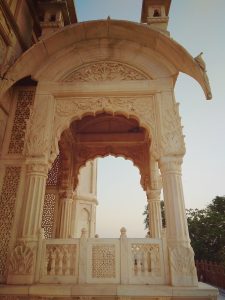 Next, we visited Jaswant Thada, a cenotaph built by Maharaja Sardar Singh in memory of his father, Maharaja Jaswant Singh. Located within walking distance from Mehrangarh Fort, it serves as the modern cremation ground for the Marwar royals. We arrived around 5:30 pm, just as the intricately carved marble mausoleum reflected orange hues, enhanced by the golden setting sun.