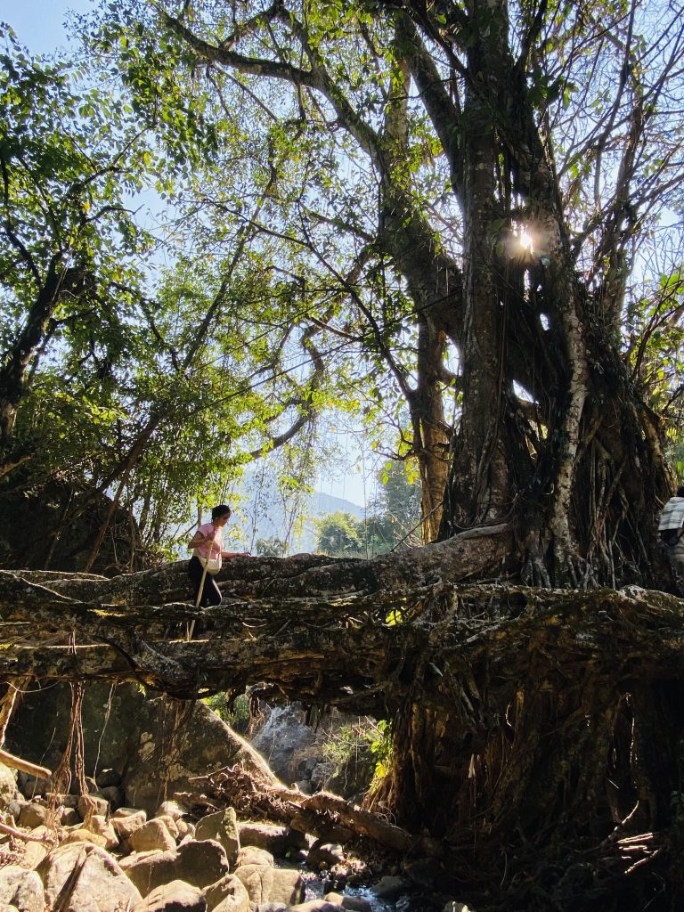 Surrounded by towering mountains and dense greenery, the bridge stood as a perfect example of nature and tradition blending seamlessly. Unlike Nongriat, there were no shops or crowds here, making it an ideal place to pause, reflect, and truly embrace the tranquillity of Meghalaya’s living root bridges.