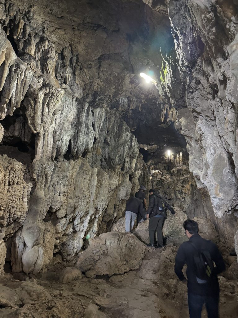 Our first destination was the Mawsmai Caves, located about 6–7 km from Cherrapunji (or Sohra, as the locals call it). Meghalaya is known for its fascinating caves, with nine out of India’s ten longest and deepest caves located in the state. Mawsmai Caves are a highlight, showcasing unique stalactite and stalagmite formations created over millennia by limestone erosion and flowing water.
