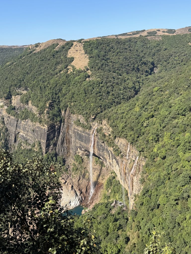 As we stood at the viewpoint, soaking in the grandeur of Nohkalikai, our guide shared the tragic legend behind its name. In Khasi, Nohkalikai translates to ‘Jump of Likai’, where Noh means ‘jump’, Ka is a prefix for women, and Likai was a local Khasi woman. This story adds a layer of depth to the already breathtaking setting, and you can read more about the fascinating legend in my detailed blog on Nohkalikai.