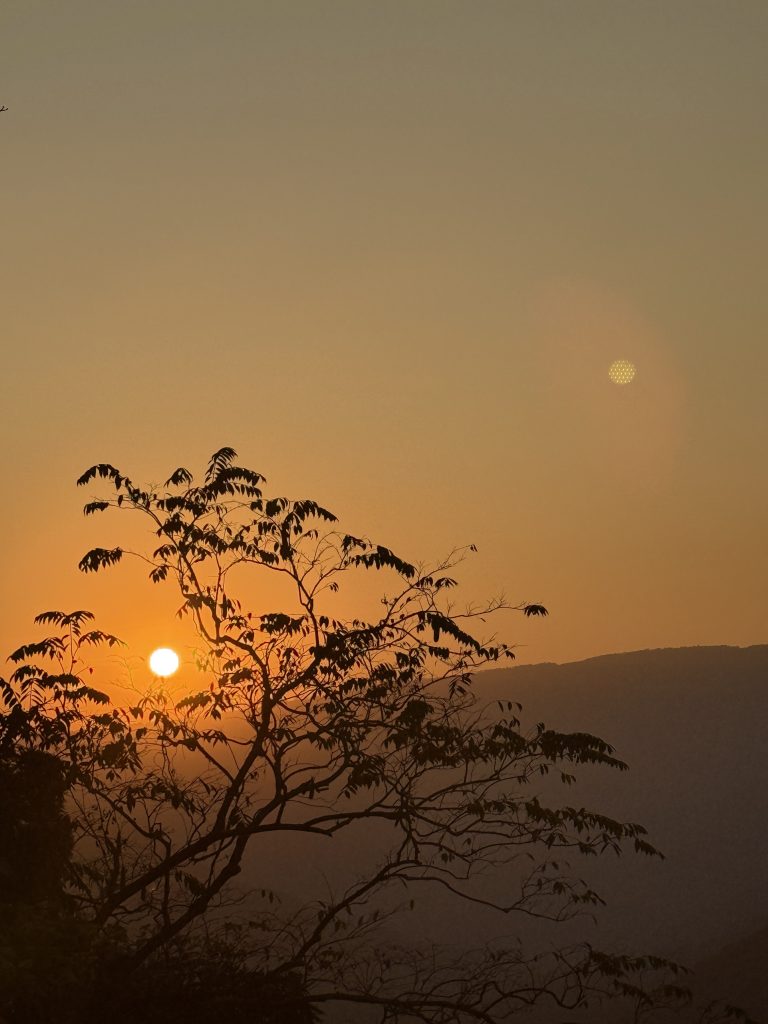Afterward, we made our way back up, climbing 200–300 steps, and as we reached the riverbank, the sun had set, casting a dusky glow on the landscape.