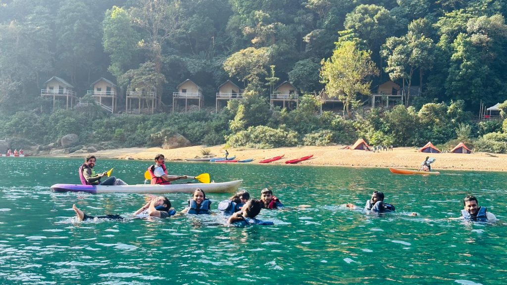 On our return, we stopped midway to indulge in a series of thrilling water activities, including Cliff Jumping, Kayaking, Snorkeling, Ziplining. The charges for these activities range between ₹300–₹500 per person. After an exhilarating time, we headed back to our tents to freshen up and prepare for the next leg of our journey.