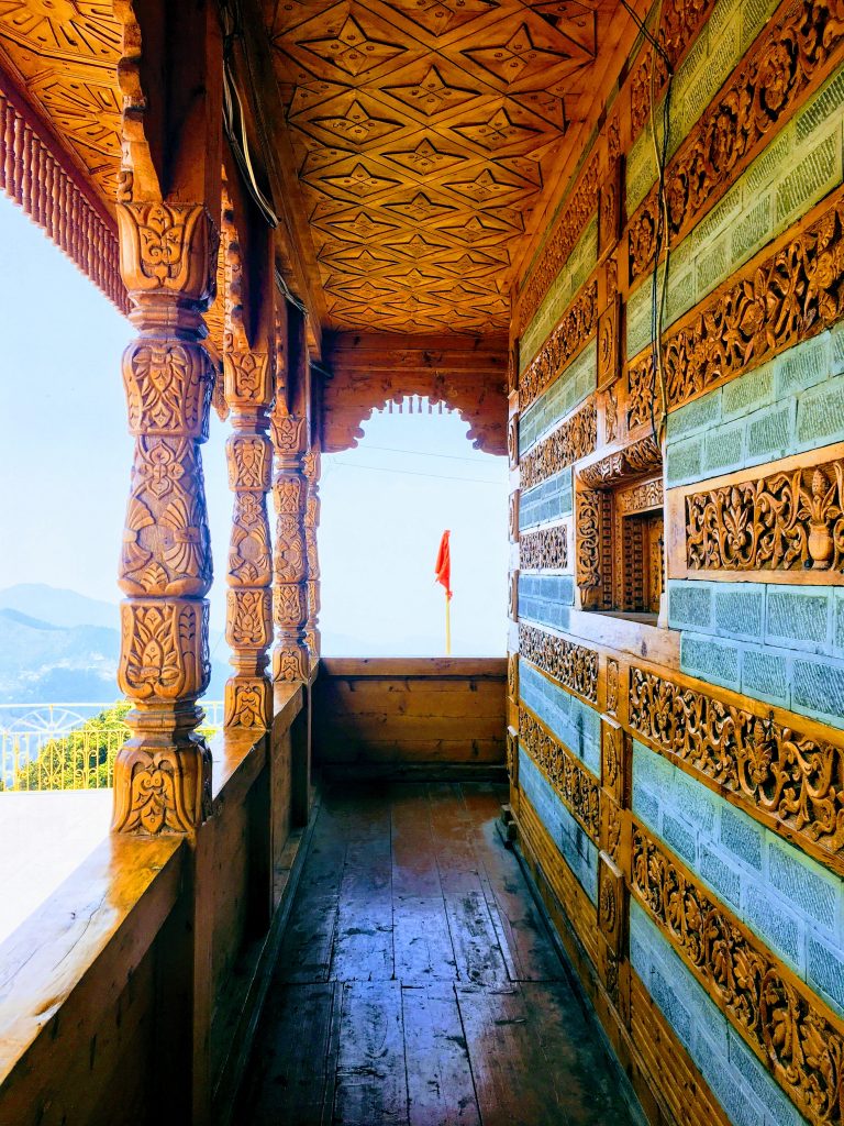 After about 45 minutes, we reached Hatu Mata Temple, dedicated to Goddess Kali (as per local beliefs). The temple, perched near the peak, is an architectural marvel, crafted from wood with intricate carvings of Hindu deities. It’s surrounded by the rugged Himalayan ranges and the lush green Narkanda valleys, offering a panoramic view that left us awestruck.