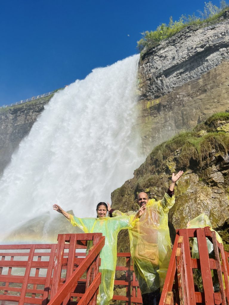 The first thing we did, was to go for the ‘Maid of the Mist’ boat ride. This boat ride departs every 30 minutes and is an absolute must. You get to see a close-up of all the three waterfalls. The ticket prices are $28 per adult. It is so well managed, that you hardly have to wait for your turn on the boat. They provide you with a blue raincoat on the US side (and pink on the Canadian side), which does its best to prevent you from getting fully drenched.